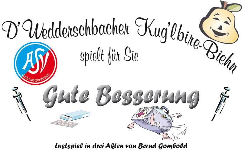 Am 05.01.2012 öffnete sich zum ersten Mal der Vorhang für die Theatersaison 2011/12 der Wedderschbacher Kug‘lbire-Biehn in der Halle des ASV Grünwettersbach. Weitere elf Vorstellungen sollten noch folgen. Nach unseren Heimspielen gab es noch Auftritte in Berghausen und in diesem Jahr, zum aller ersten Mal, im Rahmen der 750 Jahrfeier in Hohenwettersbach, wo wir in einer voll besetzten Lustgartenhalle auf ein tolles Publikum trafen. Herzlichen Dank für die Einladung!